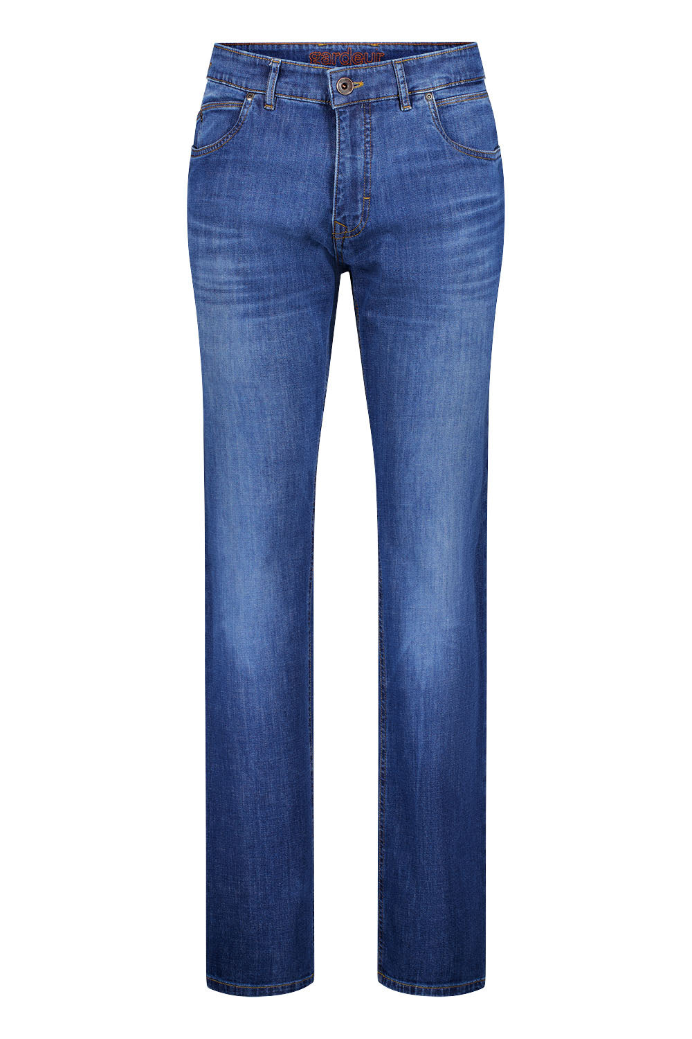 - Modern fit with straight leg and regular rise