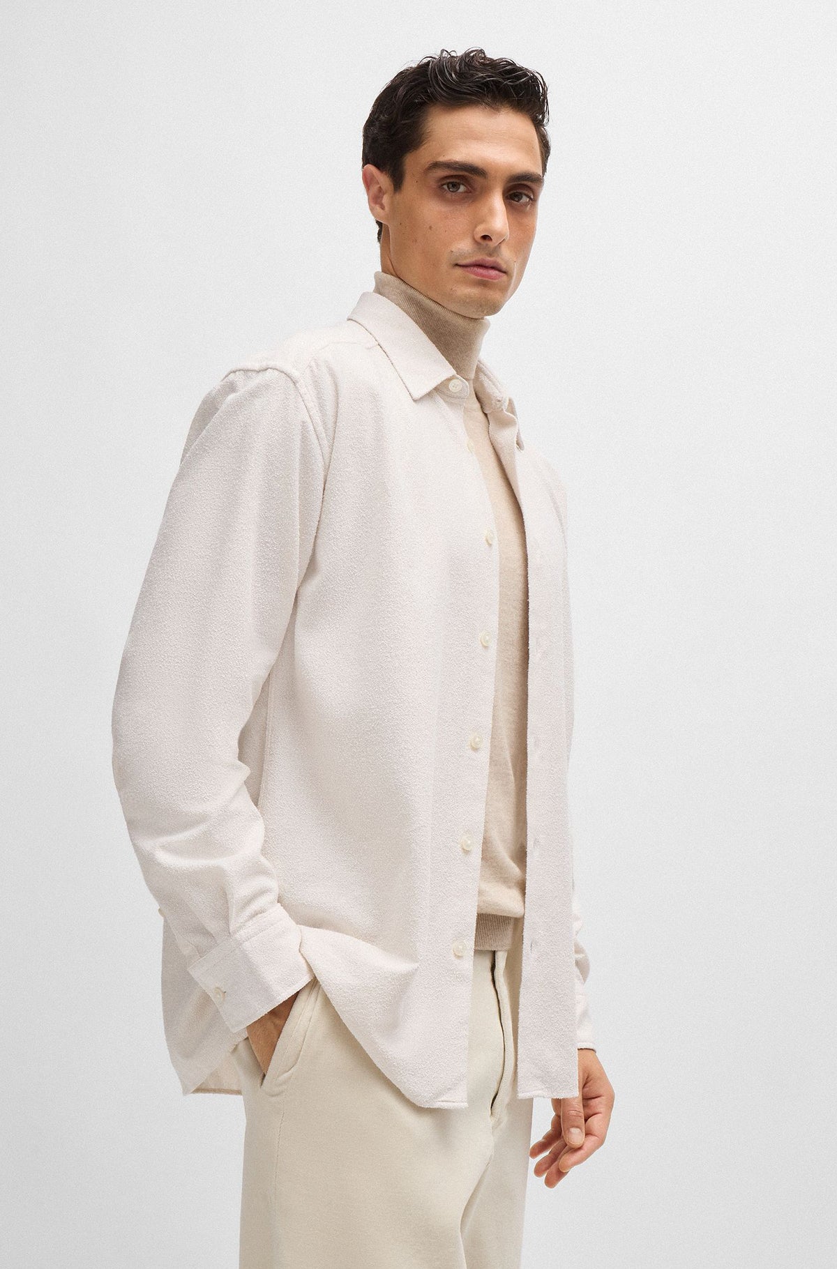 HUGO BOSS Relaxed Fit Cotton Blend Boucle Shirt