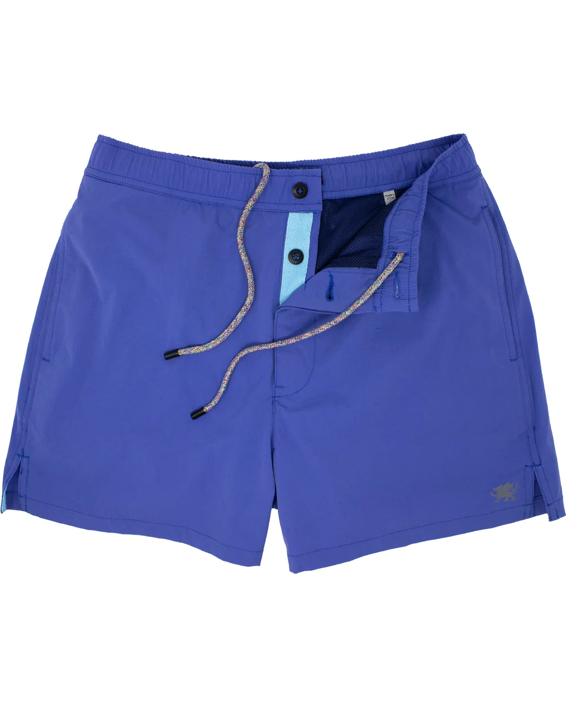 Our nylon and spandex stretch swim trunk has a mesh liner, pockets, button fly and snap closure on the back pocket. Our interior custom multicolor drawstring is unique to the Lords of Harlech. The waistband has limited stretch, for the best fit.