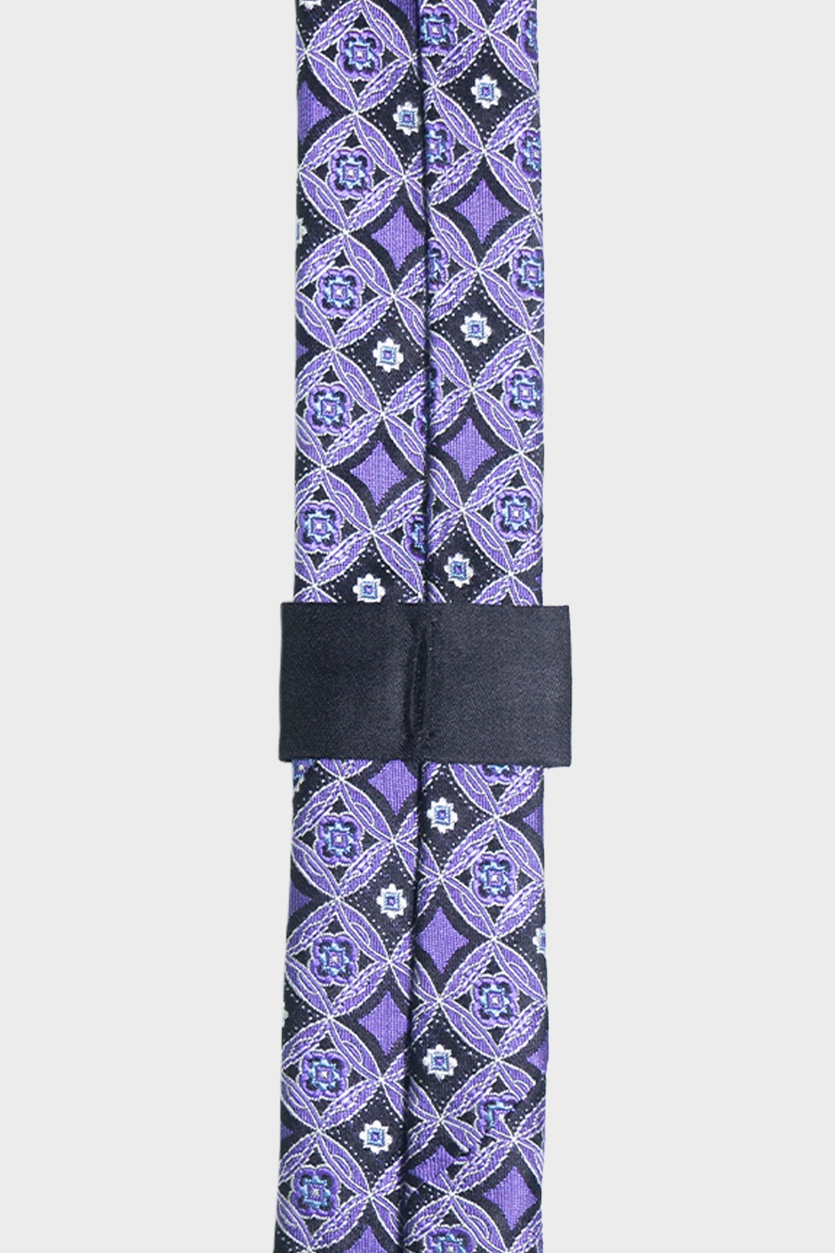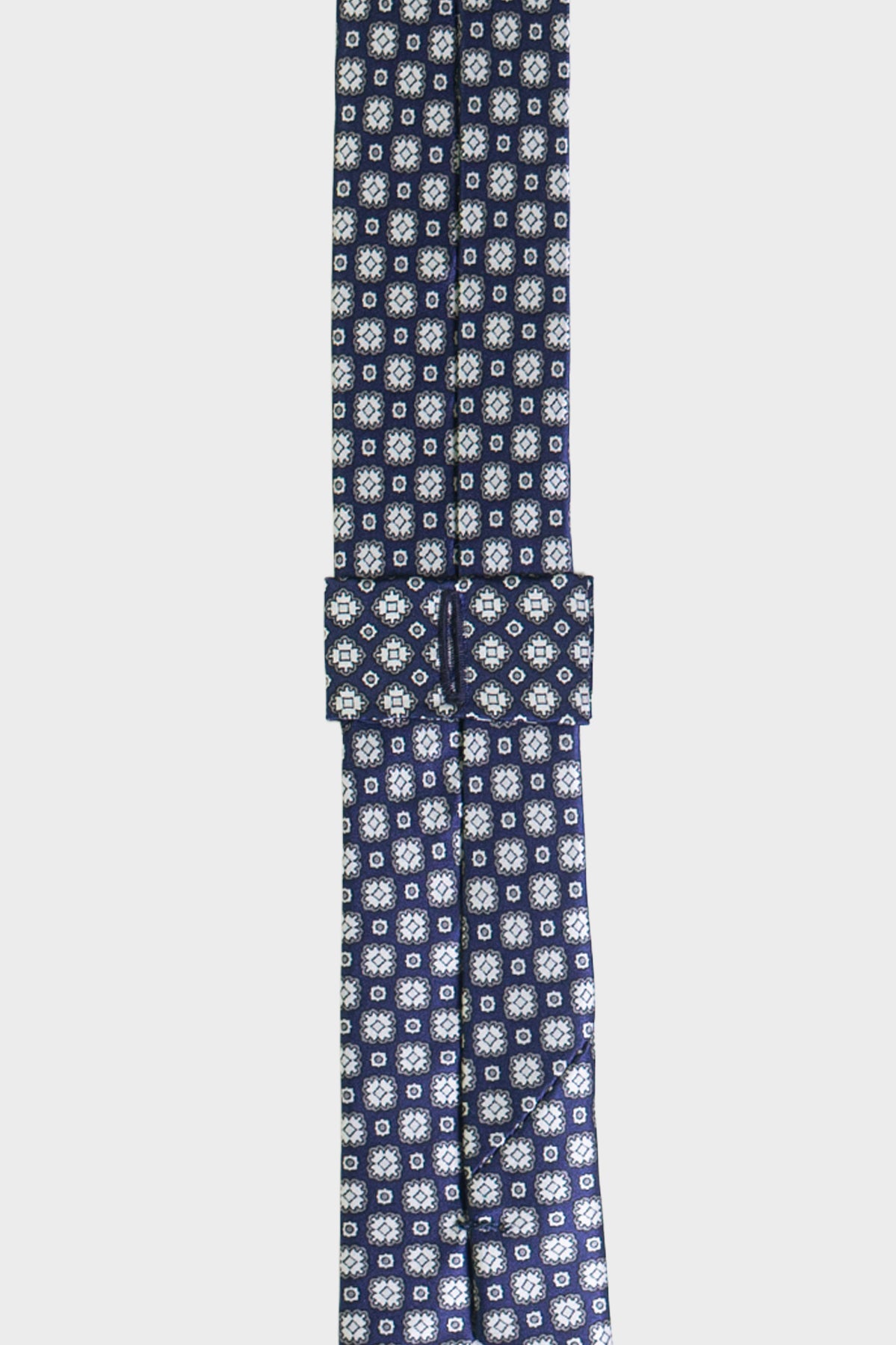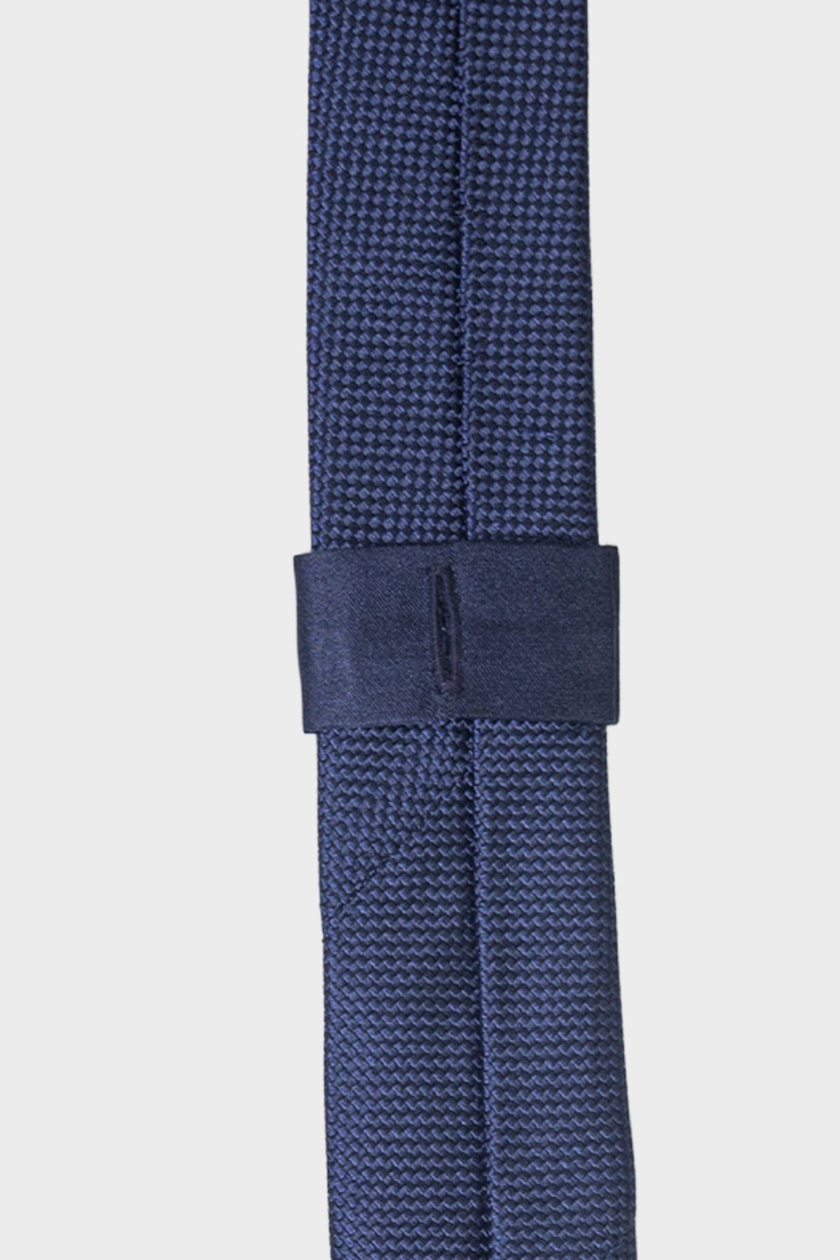 A hidden button-hole loop secures the tie directly to your shirt button, preventing unwanted movement and keeping it impeccably in place throughout the day.