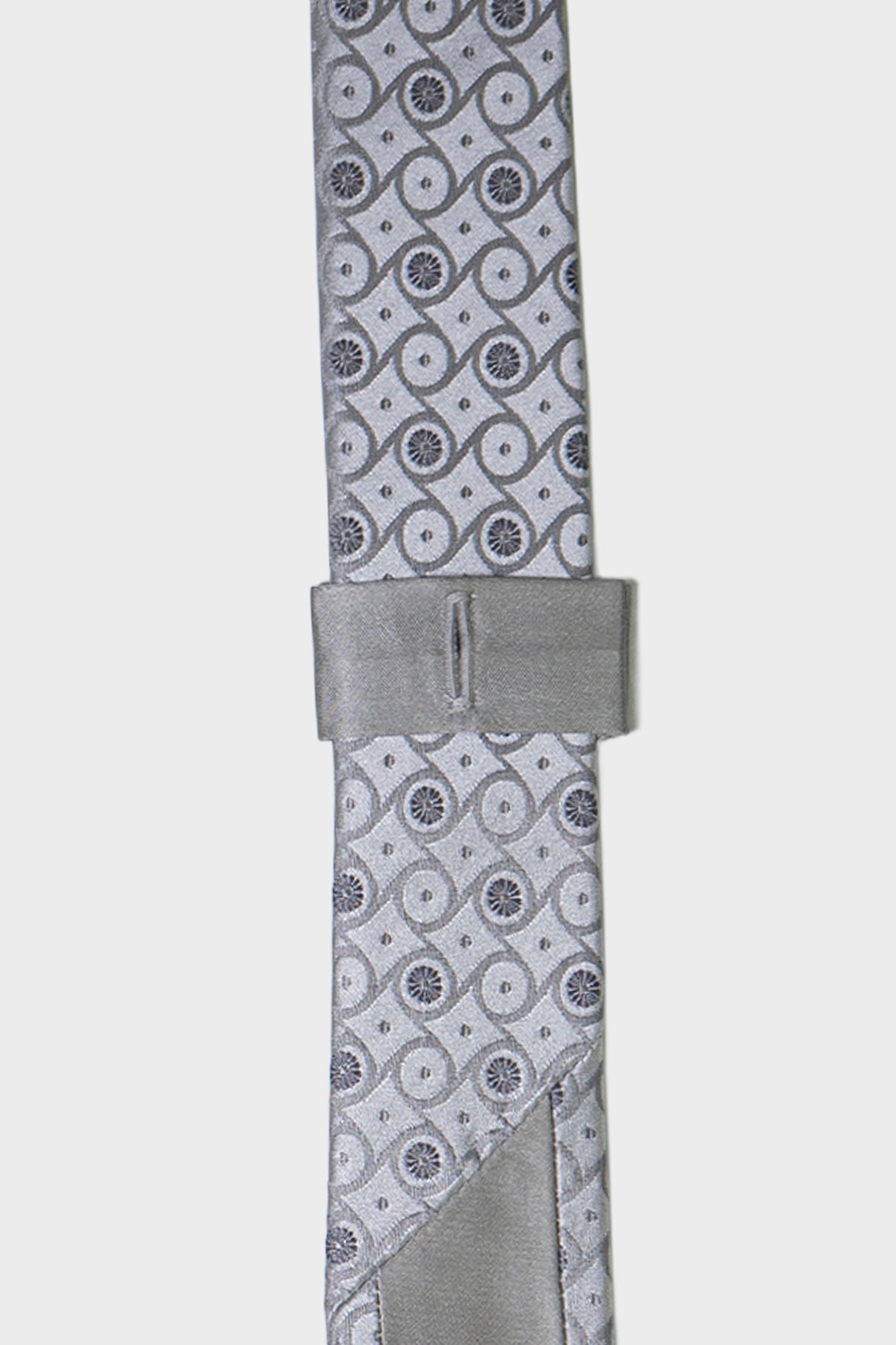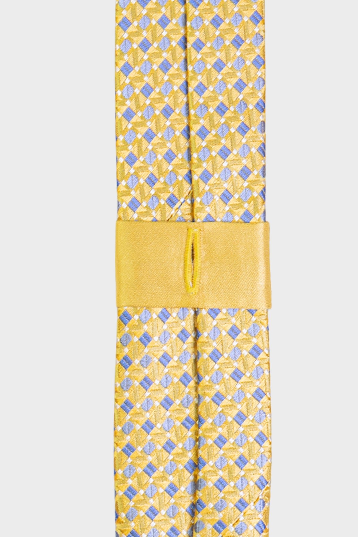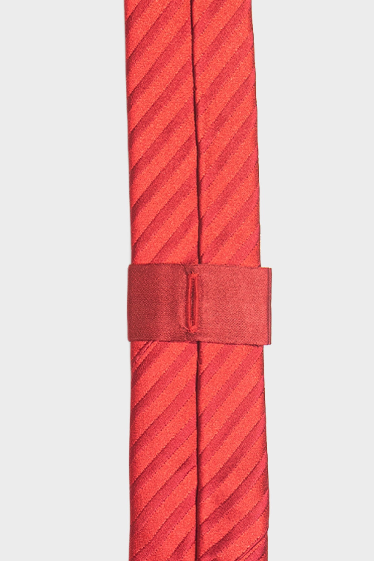 A hidden button-hole loop secures the tie directly to your shirt button, preventing unwanted movement and keeping it impeccably in place throughout the day.