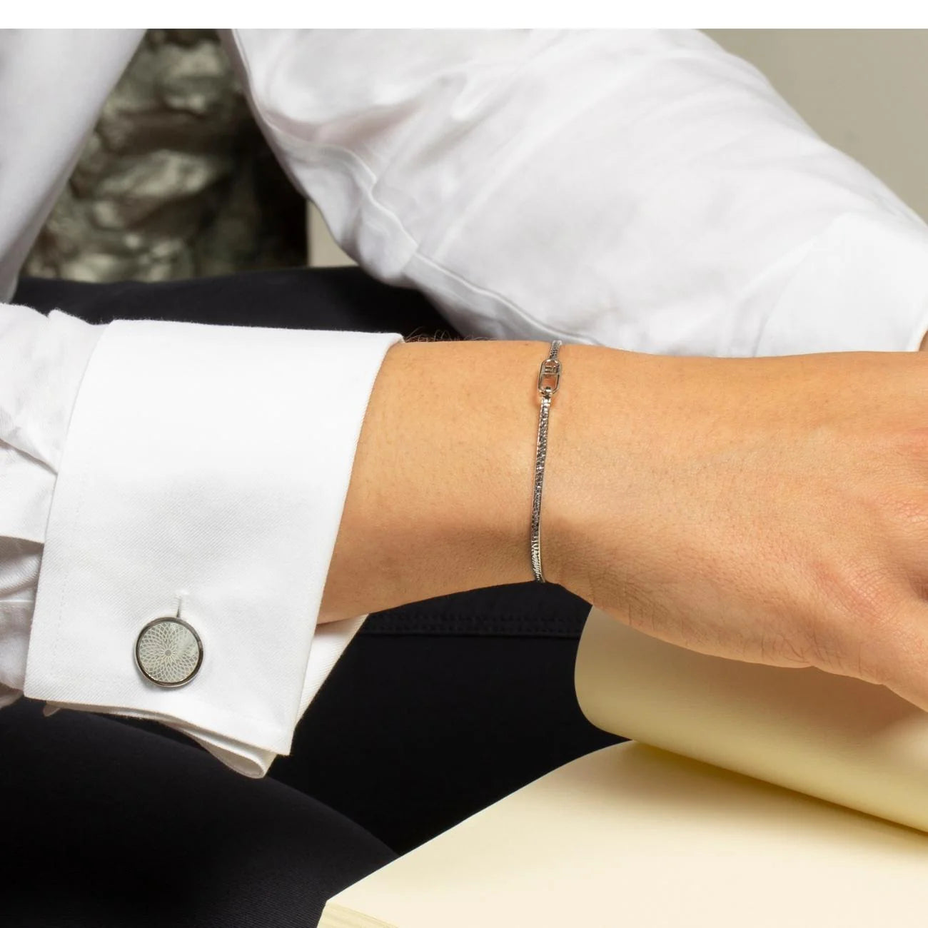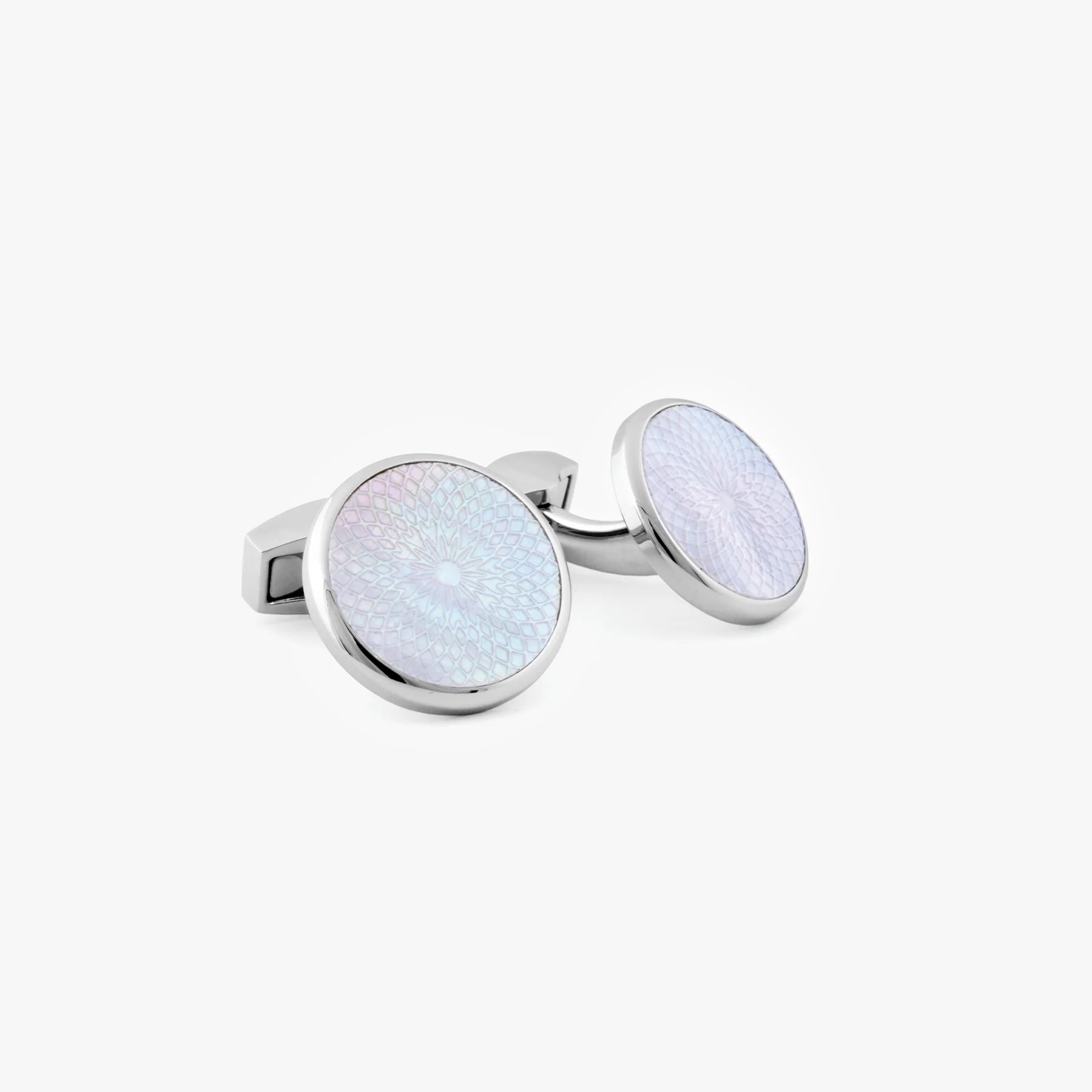 Tateossian Rotondo Guilloche Cufflinks with White Mother of Pearl