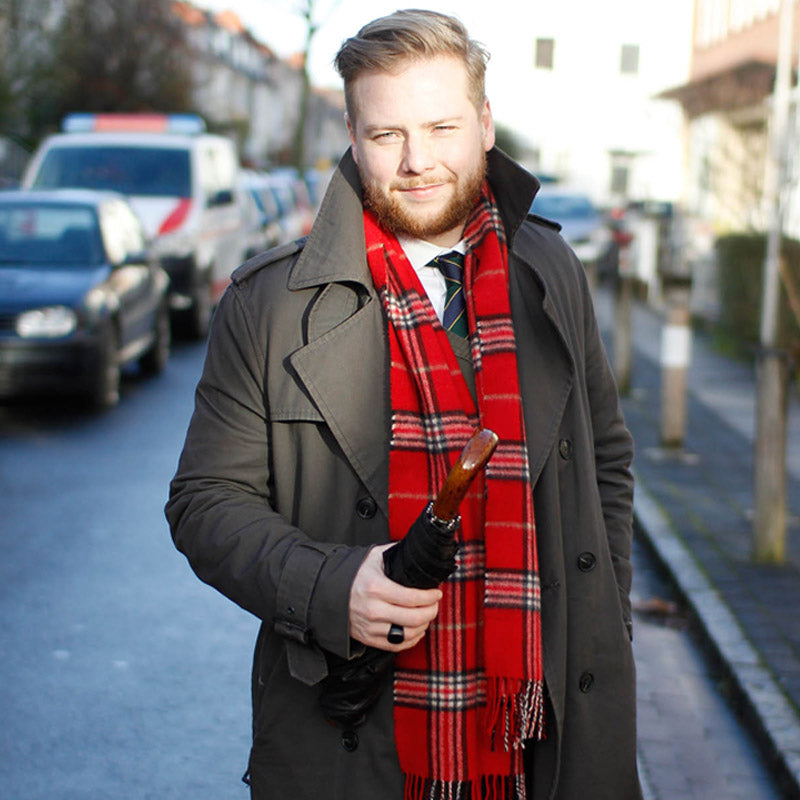 Pasotti Tartan Folding Umbrella with Leather Handle