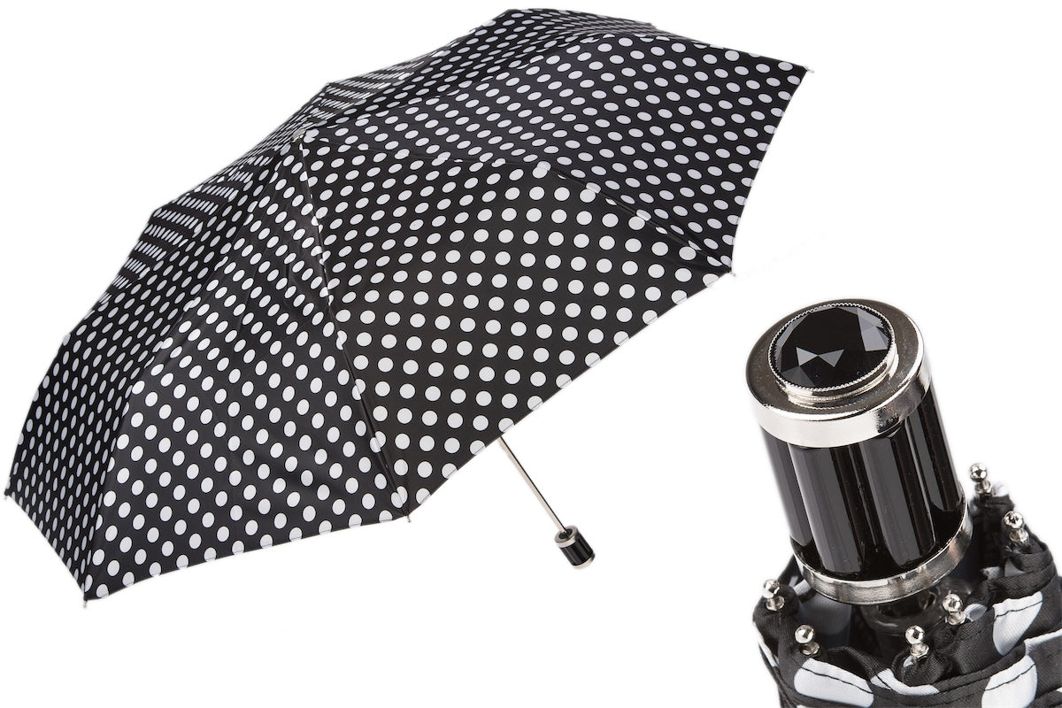 Pasotti Black and White Polka Dots Folding Umbrella