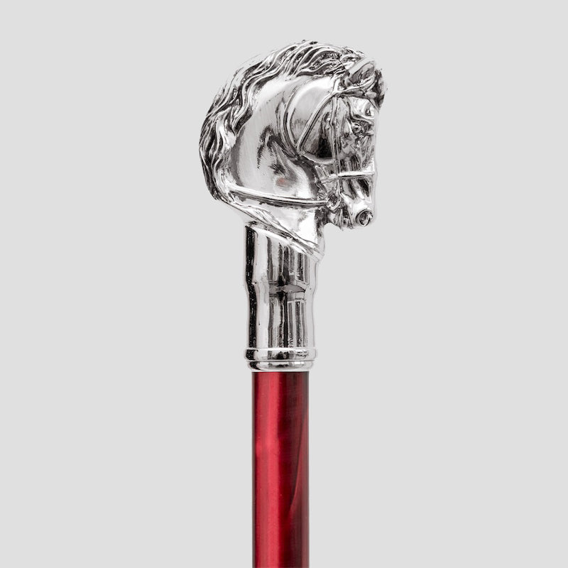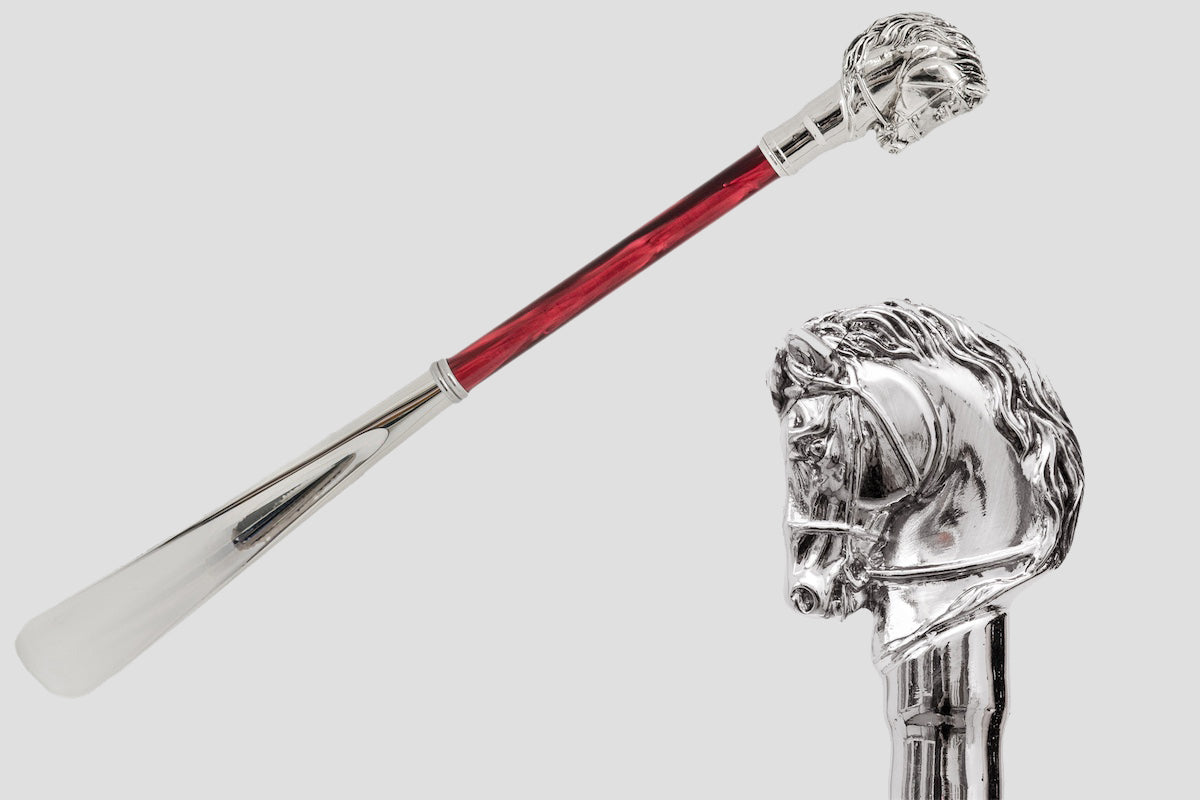 Pasotti Silver Horse Shoehorn with Red Shaft